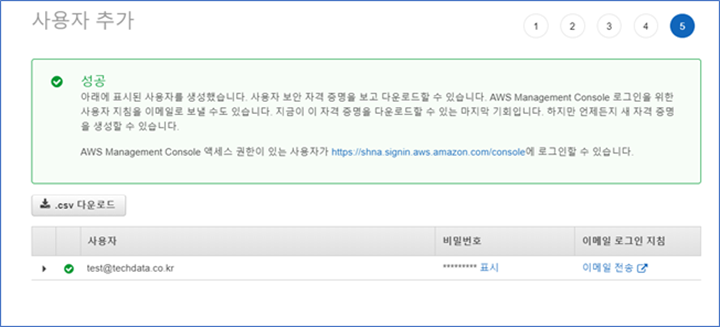 - 비밀번호 재설정 필요 : 생성된 사용자 최초 콘솔에 로그인 시 비밀번호 재 설정할때 체크한다.