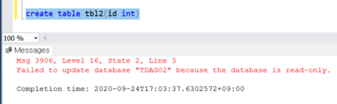 테이블을 만들면 아래와 같이 Read-Only 이므로 생성 실패된다.