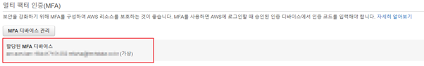 8. 등록된 가상MFA의 상태를 확인한다.