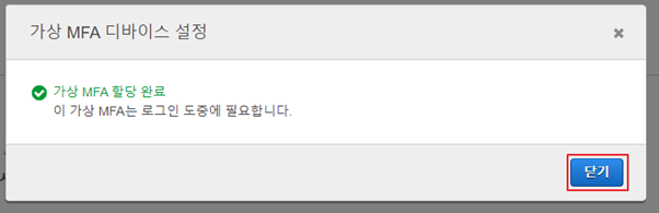 7. 정상적으로 가상MFA가 할당된 팝업을 확인한다.