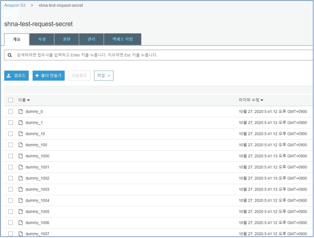 - 다시, aws s3 cp ~ 명령어를 통해 1만개의 객체를 Private EC2에서 S3 버킷으로 저장합니다. (1만번의 Put Request 발생)