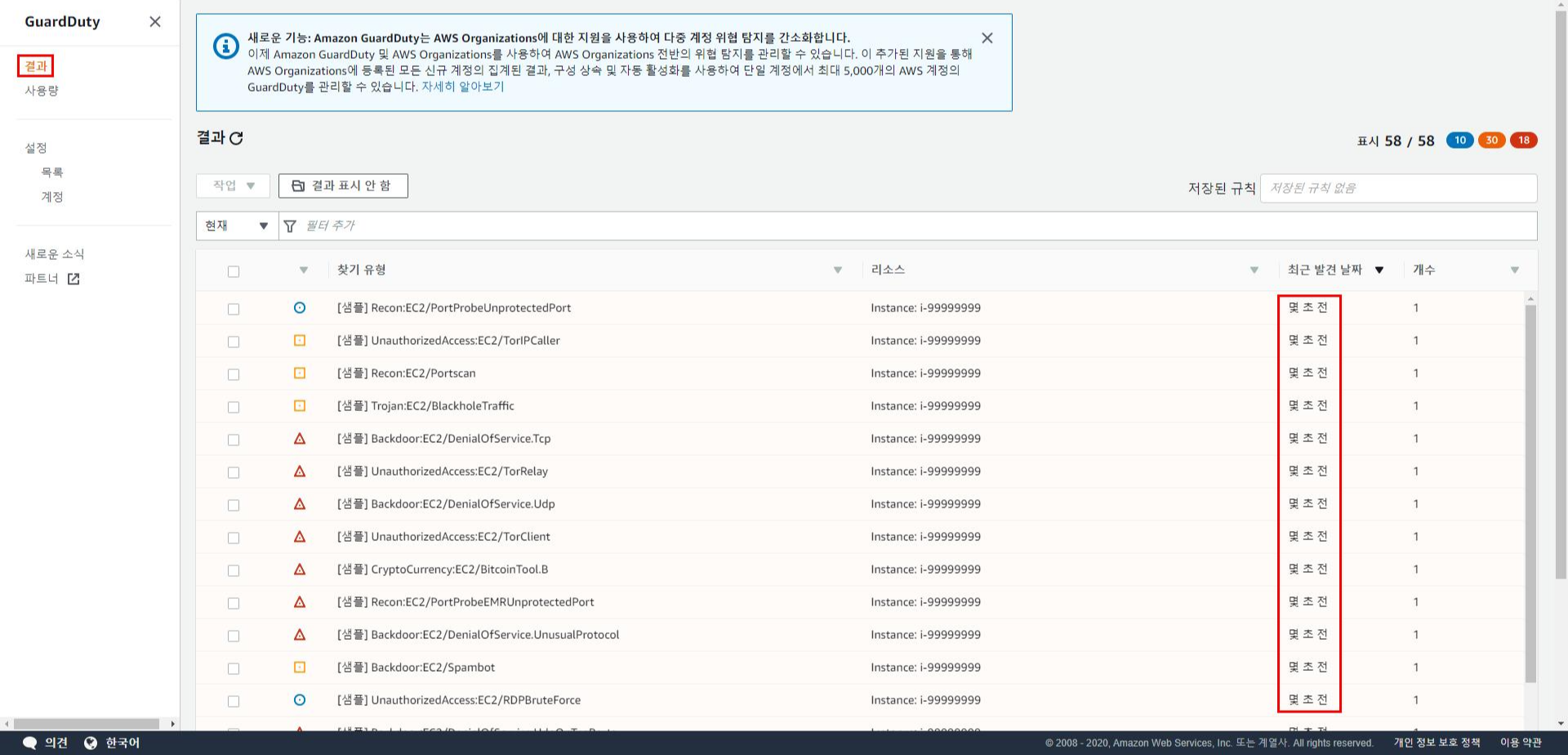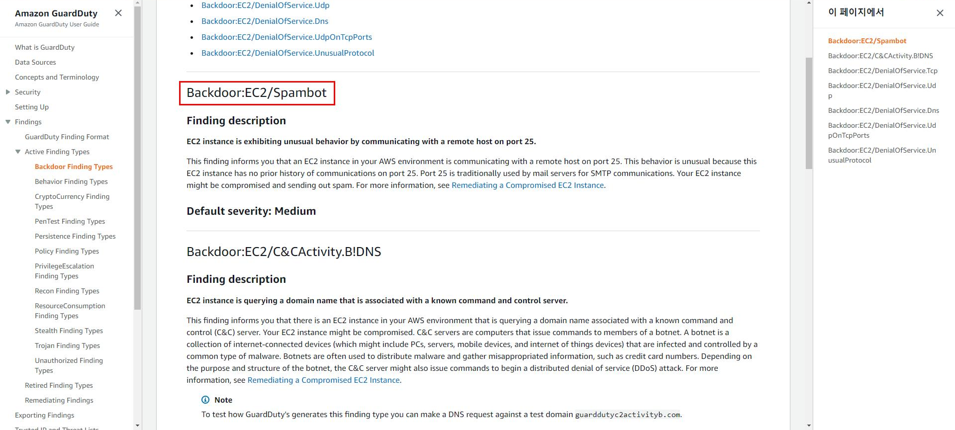 - GuardDuty Active Finding Types 목록 링크 : https://docs.aws.amazon.com/guardduty/latest/ug/guardduty_finding-types-active.html